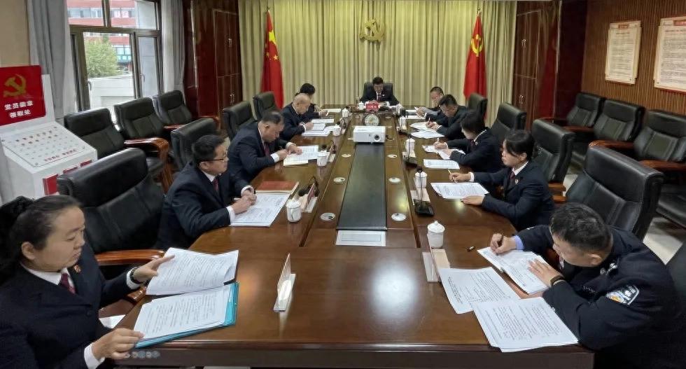 10月9日上午稀土高新区人民检察院召开党组(扩大)会议深入学习贯彻全市检察工作质效抽检通报会精神。结合实际对照问题自查剖析,直面不足深入研究改进措施。党组书记、检察长王恩光主持会议,院领导班子及各部门负责人参加会议。